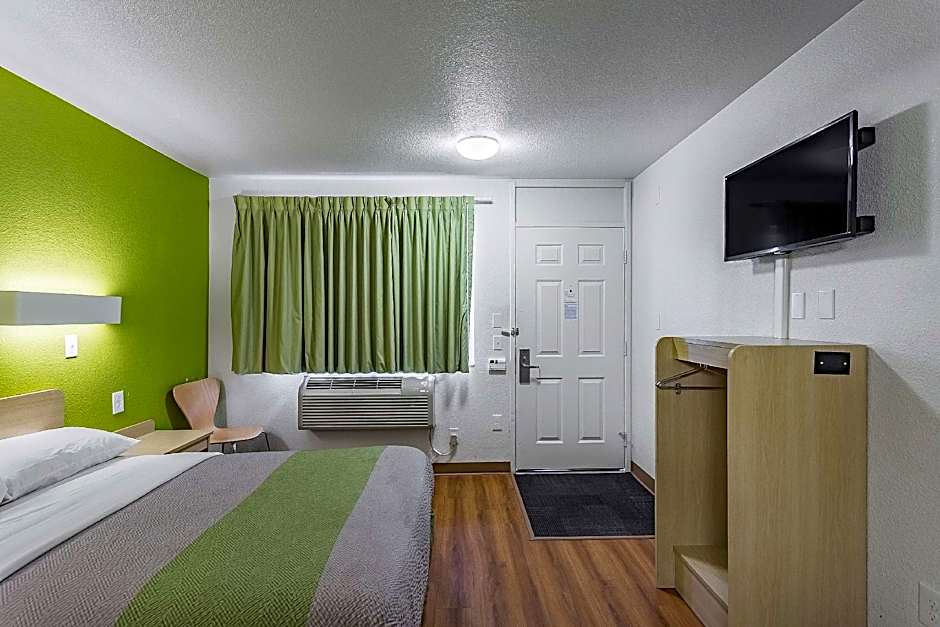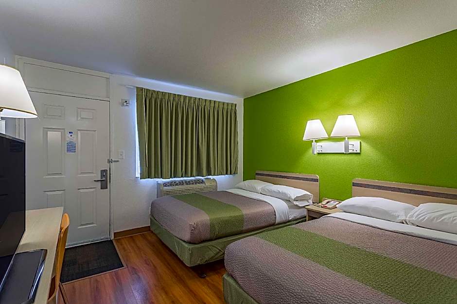 The hotel offers single and double occupancy rooms. Smoking is allowed in designated rooms. Bed sizes vary from queen to king, and room sizes are standard for budget hotel accommodations.