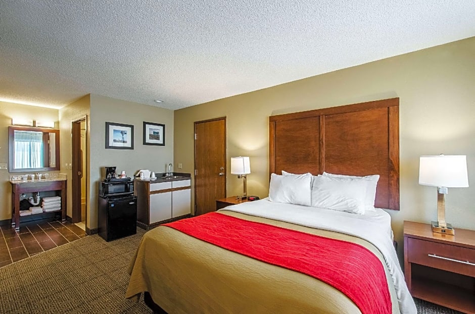 The Comfort Inn Lexington hotel offers a variety of room choices such as King Suites, Queen Rooms, King Rooms with Hot Tub, and Queen Rooms with accessibility features. All rooms are non-smoking and have a room size of 301 sqft. The occupancy varies, accommodating either 2 adults and 1 child or 4 adults and 3 children depending on the room type. Bed sizes range from Queen to King, with some rooms also having a sofa bed.