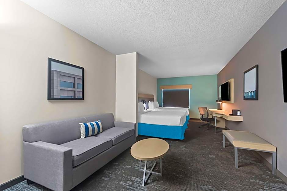 The hotel offers various types of rooms including King Suites with Sofa Beds and Communication Assistance, King Rooms with Disability Access, Queen Rooms with Two Queen Beds and Communication Assistance, Queen Suites with Sofa Beds, and Queen Rooms with Two Queen Beds and Walk-in Shower or Roll-In Shower with Disability Access. All rooms have non-smoking policies and can accommodate different numbers of adults and children. Bed sizes range from King to Queen size.