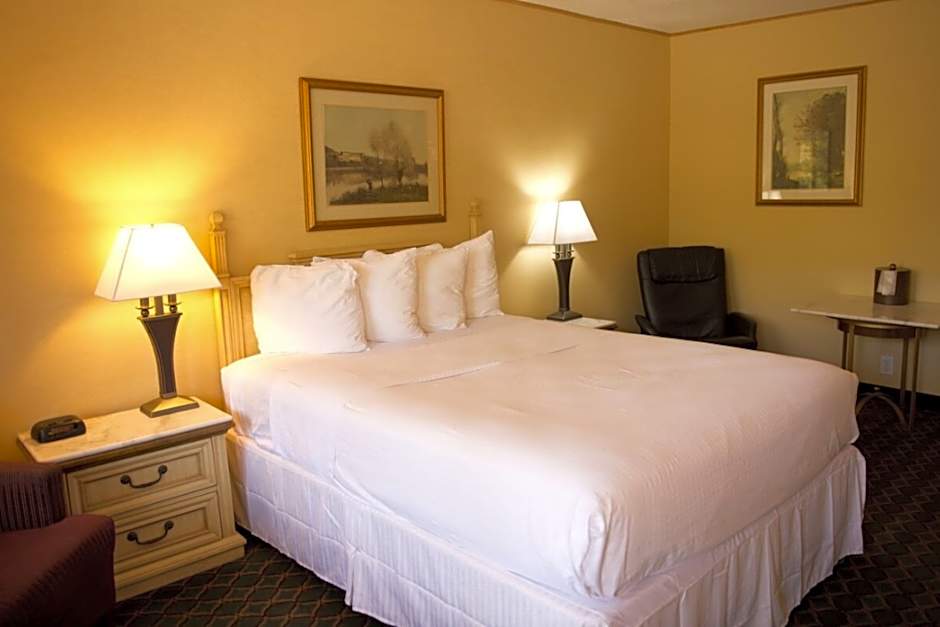 This room features WiFi and a TV with cable channels. The room also includes a mini refrigerator, microwave, tea and coffee maker and a hair-dryer. An iron with ironing board and free toiletries are provided as well. Linens are refreshed daily.