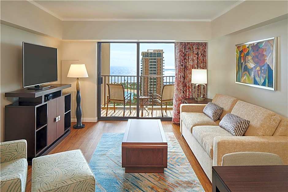 Features a separate living area with a sofa bed.