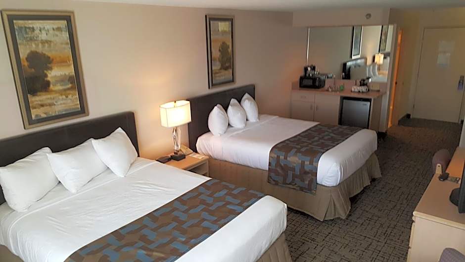 The Shilo Inn Elko offers Queen Rooms with Two Queen Beds, which are classified as Family rooms. These rooms have a size of 355 sqft and do not allow smoking. They can accommodate up to 4 adults and 3 children, and feature 2 Queen size beds.