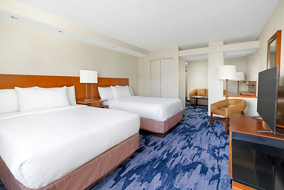 The Fairfield by Marriott Inn & Suites Las Vegas Stadium Area offers a variety of room types including King Rooms, Queen Rooms with Two Queen Beds, and Suites. The rooms are all 377 sqft in size and do not allow smoking. The King Room accommodates 3 adults and 2 children with a King size bed. The Queen Room with Two Queen Beds accommodates 4 adults and 3 children with 2 Queen size beds. The Suites accommodate 3 adults and 2 children with a King size bed and a sofa bed, or 5 adults and 4 children with 2 Double beds and a sofa bed.