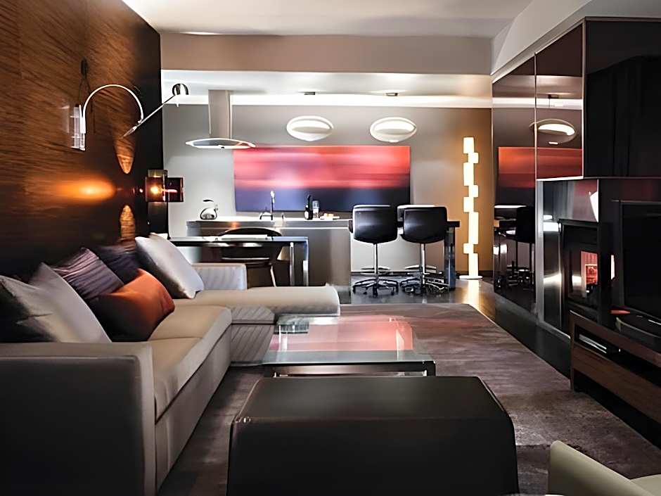 The spa bath and fireplace are the special features of this suite. This spacious suite consists of 1 living room, 1 separate bedroom and 2 bathrooms with a shower and free toiletries. Meals can be prepared in the well-fitted kitchenette, which is equipped with a stovetop, a refrigerator, a dishwasher and kitchenware. The air-conditioned suite provides a flat-screen TV with cable channels, a washing machine, a seating area, a wardrobe as well as city views. The unit offers 2 beds.