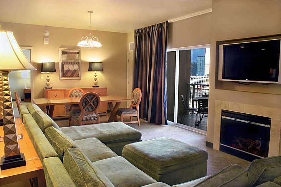 Also known as the "Solitaire Suite", this suite offers city views, a full kitchen, separate seating area with sofa bed and private bathroom.