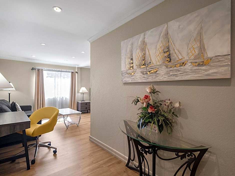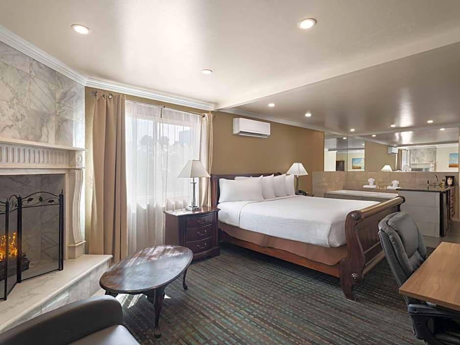 This air-conditioned suite includes a large jetted tub, wet bar, seating area, free WiFi, cable TV with Showtime movie channels, a microwave, and a refrigerator.
