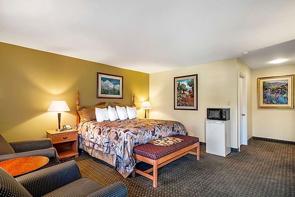 Superior King hotel rooms are spacious and include one King size bed and a comfortable seating area. These rooms include a 37'' flat screen with Direct TV, hairdryer, cosmetic mirrors, large bathroom with bath/shower combo, iron and ironing boards, in-room coffee maker, microwave/ mini fridge, free local calls, free secure high speed WIFI. Rooms are located in our exterior building adjacent to pool area.