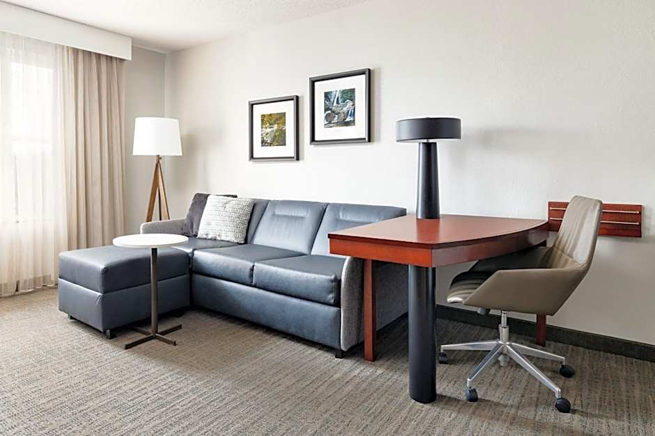 This 1-bedroom suite includes a kitchen and a seating area with a sofa bed.