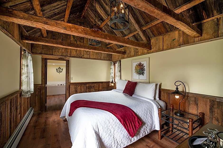 The hotel offers a variety of room types, including a Sugar House Cottage (Bungalow) with 1 Queen size bed and 1 Sofa Bed, a Carriage House Suite (Double) with 1 King size bed and 1 Sofa Bed, a Two Queen Bed Room in the Main Inn or Salt Box (Double) with 2 Double beds, a Barn Suite with 2 Twin beds, 1 Queen size bed, and 1 Sofa Bed, a Log Cabin (Suite) with 1 Sofa Bed, 1 King size bed, and 3 Twin beds, and a Premium King Room in the Main Inn or Salt Box (Double) with 1 King size bed. None of the rooms allow smoking.