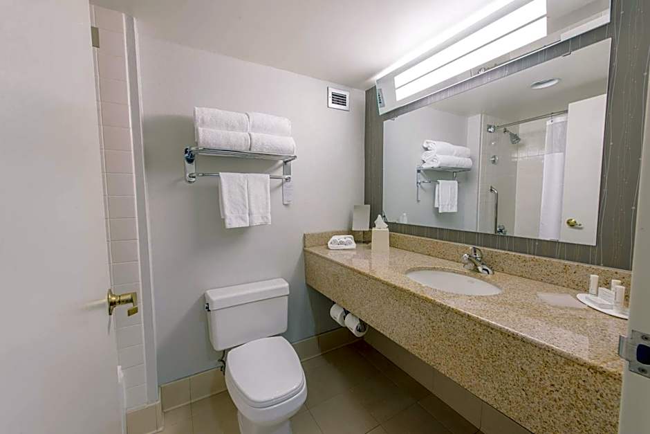 Amenities include free on-site parking, free Wifi, an indoor swimming pool, air conditioning, a fitness center, and a business center. An on-site restaurant and bar keep dining simple, while meeting/banquet facilities are available for a fee. Pet-friendly options are offered with extra charges, and facilities for guests with mobility needs include wheelchair accessibility and 24-hour front desk service.