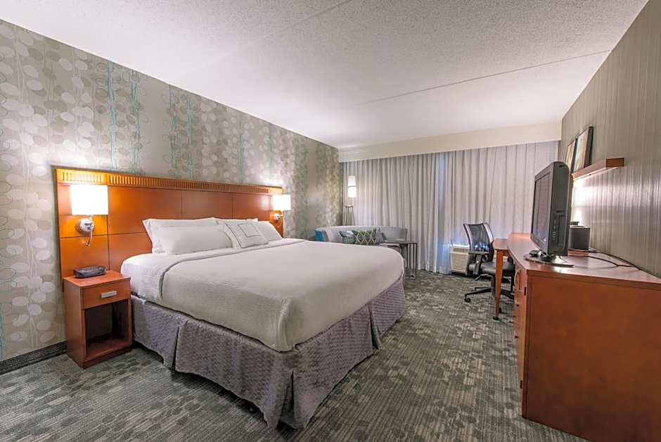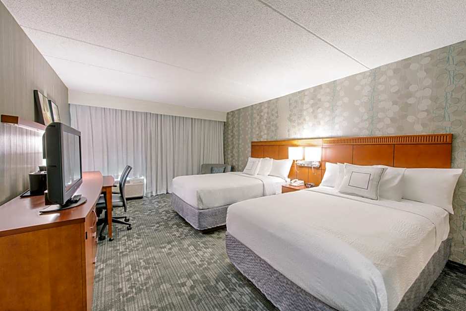The Courtyard by Marriott Nashua offers two types of rooms. The Double Room with Two Double Beds accommodates up to 4 adults and 3 children, with a room size of 194 sqft. Smoking is not allowed. The King Room also accommodates up to 4 adults and 3 children, has the same room size, and does not allow smoking. Both rooms feature a King size bed.