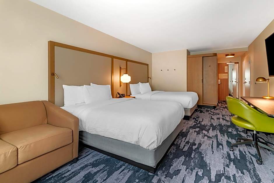 The Fairfield by Marriott Inn & Suites North Conway offers a variety of room types. These include Queen Rooms with Two Queen Beds with a sofa bed and a mountain view, Queen Suites with Two Queen Beds, King Rooms, Queen Rooms with a mountain view, and Queen Rooms with Two Queen Beds and a sofa bed. Smoking is not allowed in any of the rooms. The rooms can accommodate between 4 and 6 adults and have either Queen size beds or a King size bed.