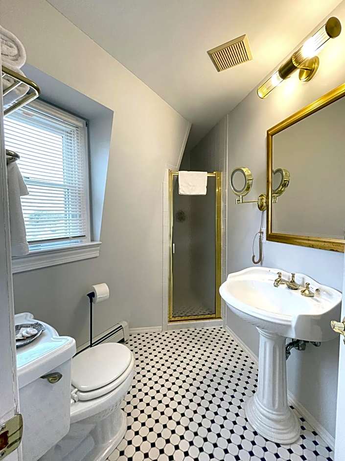 This second or third floor room features a flat-screen TV. A private bathroom is also included.