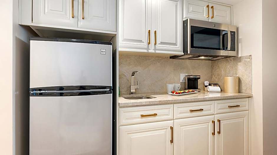 Featuring a balcony with ocean views, this room has a spacious seating area and a kitchenette.