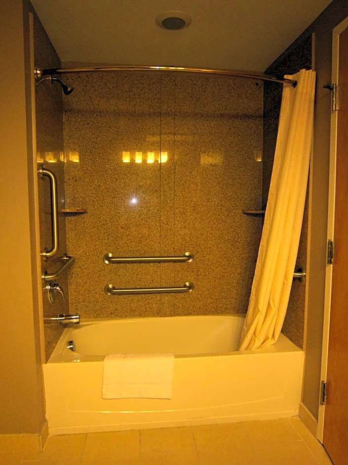 This disability accessible guestroom includes a wheelchair accessible bathroom complete with a bath and toilet with grab bars. The property includes braille and a guestroom door with a lowered peephole.