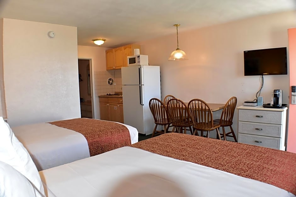 The Blue Water Motel offers Deluxe Rooms with Two Full Beds and Deluxe Rooms with Two Full Beds and Kitchenettes, both of which are double occupancy rooms with 269 sqft of space. These rooms do not allow smoking and have 2 double beds each. Additionally, the hotel has a Two room Suite with Three Full Beds and a Kitchenette, which is a suite that can accommodate up to 6 adults. This suite is also non-smoking and has 366 sqft of space with 3 double beds.
