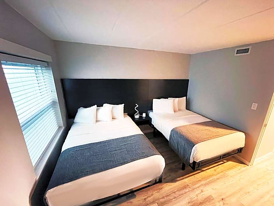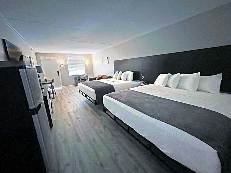 Located in the three-story motel section of the resort, this suite offers a kitchenette, bedroom with 2 double beds, bathroom, living room with sofa bed, microwave, small refrigerator and two TVs. Guests in this room will have views of the pool and oak avenue. Elevator access is not available for this room.