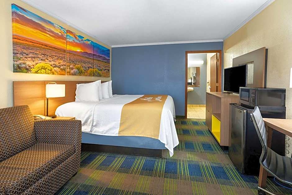 At the Days Inn by Wyndham Alamogordo, the hotel offers King Rooms, Queen Rooms with Two Queen Beds, and King Studio Suites. All rooms and suites are non-smoking and have varying room sizes. The King Room and Queen Room with Two Queen Beds accommodate 2 adults and 1 child, and 4 adults and 3 children respectively. The King Studio Suite can accommodate 4 adults and 1 child.
