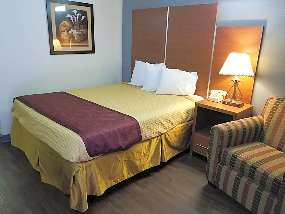 Room options include configurations with a king bed, a queen bed, or two queen beds. Some room types allow smoking, while others are non-smoking. This mix of layouts accommodates different travel styles.