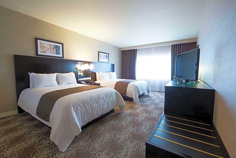 Two room suite, extra bathroom, separate living area, dining table, 2 HDTVs, sofa, WiFi. This two-room, one and a half bath suite features two queen-sized Sweet Dreams® beds and a separate living area. The living room is separated from your bedroom by a solid core door and offers a 42-inch TV, double sleeper sofa, dining table with four chairs, and a mini-fridge. Catch up with work at the desk with complimentary WiFi access or watch a movie in the bedroom on the 37-inch TV.