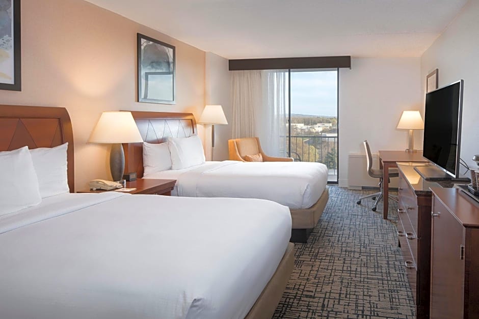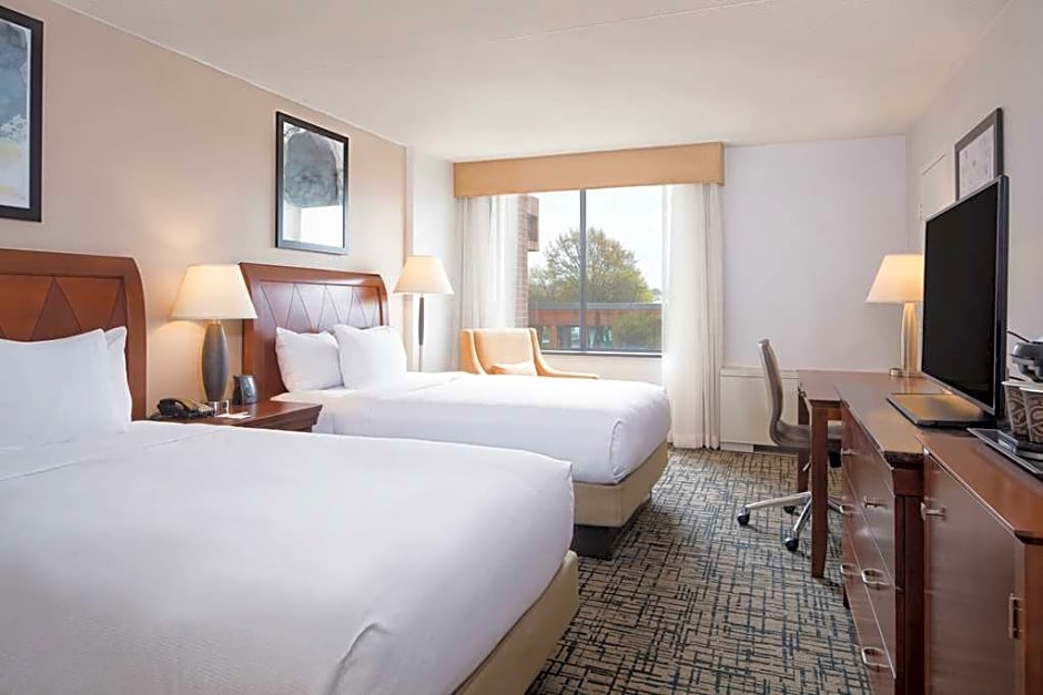 The DoubleTree by Hilton Hotel Syracuse offers a variety of room options including double rooms with two double beds, king rooms with balconies, and deluxe double rooms. All rooms are non-smoking and have a room size of 312 sqft. The rooms can accommodate either 3 adults and 2 children or 4 adults and 3 children. Bed sizes include double beds or king-size beds.