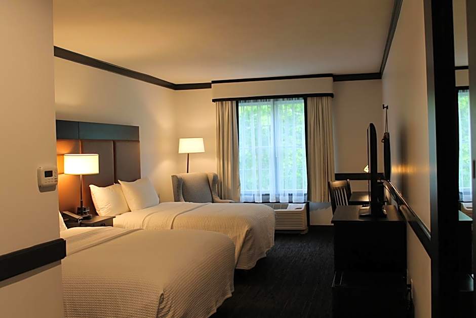 Room options offer a range of styles, from Studio with a King bed to Deluxe and Traditional layouts featuring two Queen beds, plus Classic King options and Suites. The Suite spans 474 square feet and includes a king bed alongside a sofa bed, balancing privacy and space to spread out. A stay blends dining, recreation, and a touch of local charm in Fayetteville.