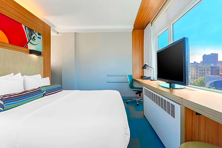 Featuring 523 rave reviews, Aloft Harlem promises a memorable stay. The hotel offers a range of amenities including a complimentary breakfast to start your day off right. Enjoy the convenience of free WiFi and the comfort of air conditioning in the stylish and non-smoking rooms. The 24-hour front desk ensures a hassle-free experience, while the fitness center invites you to stay active during your stay. Indulge in live music and performances at the hotel's bar, or take advantage of the free toiletries and private bathroom provided.