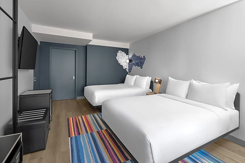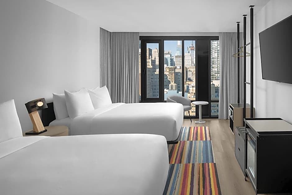 At Aloft New York Chelsea, guests can choose from Queen Rooms with Two Queen Beds or King Rooms with or without city views. All rooms have a room size of 215 sqft and do not allow smoking. The accommodations range from 2 adults in a King Room to 4 adults in a Queen Room with Two Queen Beds.
