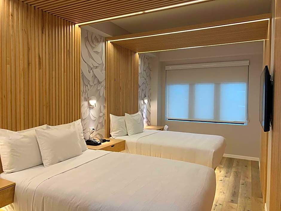 The hotel offers a Queen Suite with Mobility Accessible Tub, which is a suite with a size of 248 sqft. Smoking is not allowed in this room. It can accommodate 3 adults and has 1 sofa bed and 1 queen size bed. Additionally, there is a Standard Double Room with Two Double Beds, a Quadruple room with a size of 161 sqft. It can accommodate 4 adults and has 2 double beds. Another option is the Queen Room, a Double room with a size of 151 sqft. It can accommodate 2 adults and has 1 queen size bed. Smoking is not allowed in both rooms.