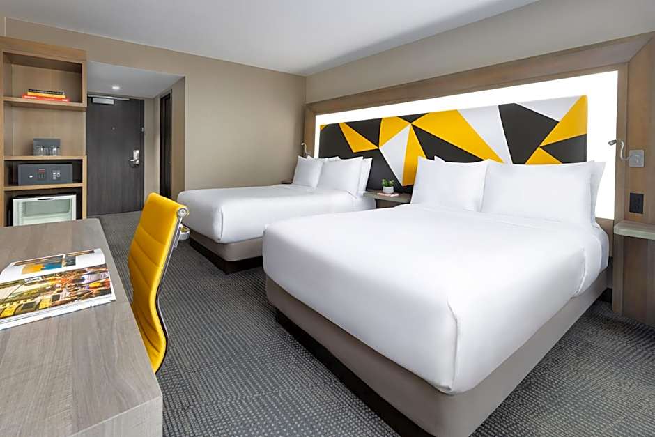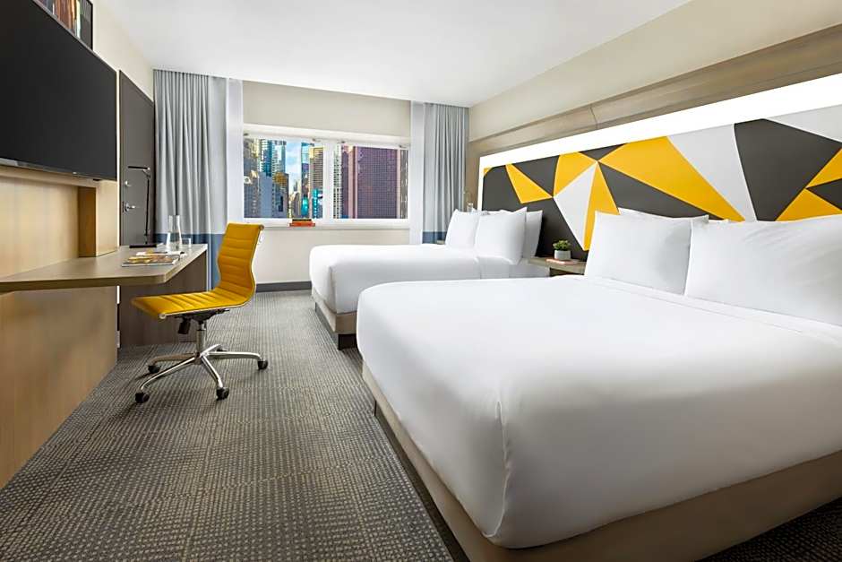 The M Social Hotel Times Square New York offers a variety of room options. The rooms are either doubles or quadruples and have a size of 280 sqft. None of the rooms allow smoking. The rooms are equipped with either 2 double beds or 1 king-size bed. Occupancy ranges from 2 adults and 1 child to 4 adults and 3 children.