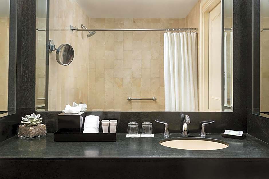 At the Michelangelo Hotel, there are a variety of room types available. Suites include the Grand One-Bedroom Suite, Junior King Suite, and One-Bedroom Suite, all with a king-size bed. The Executive King Room and Double Room with Two Double Beds are the double room options, with the latter accommodating more guests. For smaller groups, there is the Executive Room - ADA Compliant and the King Studio, both with a queen-size bed. All rooms have a no-smoking policy.