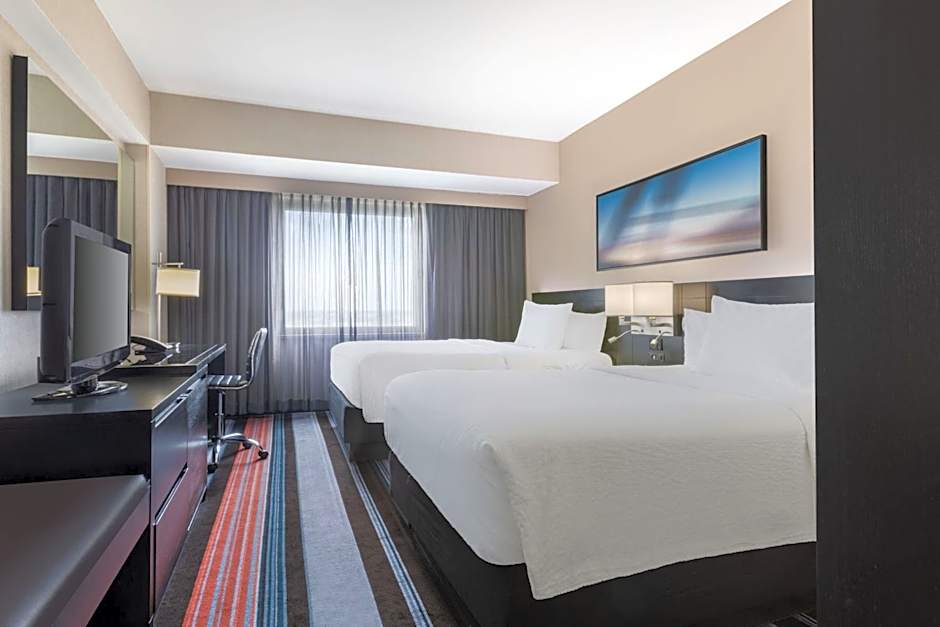The Courtyard by Marriott New York JFK Airport offers executive double rooms with two double beds, executive king rooms, king rooms, and double rooms with two double beds. Smoking is not allowed in any of the rooms. The room sizes for the executive double rooms and double rooms with two double beds are 258 sqft, while the executive king rooms and king rooms are slightly larger at 344 sqft. The rooms can accommodate between 3 to 4 adults and 2 to 3 children, depending on the room type.