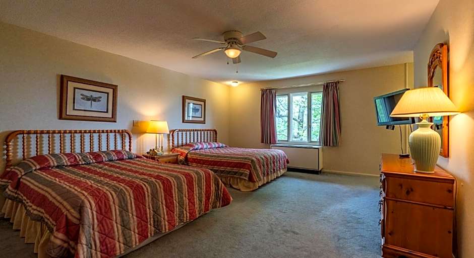 The types of rooms available at 4 Seasons at Beech Mountain include Queen Studios and Suites. The Queen Studios have a room size of 355 sqft and accommodate 4 adults. They have either a double bed or a twin bed, along with a sofa bed. Smoking is not allowed in any of the rooms. The Suites have a larger room size of 700 sqft and can accommodate 6 adults. They have either 2 double beds or a sofa bed and 2 double beds.