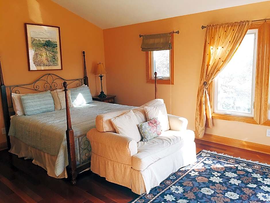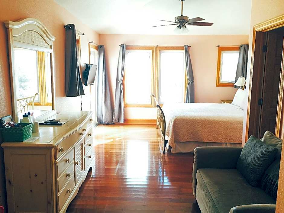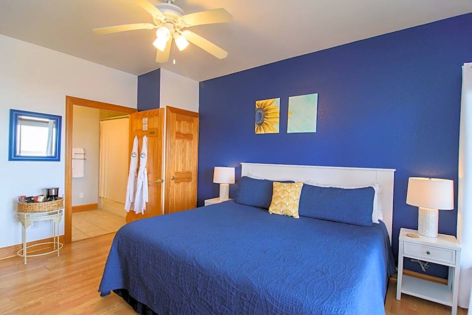 Located on the south side of the west building, this soundfront room includes views of the sound and sunset. Vaulted ceilings, hardwood floors, and a private bathroom are provided. A 32-inch flat-screen TV is included.