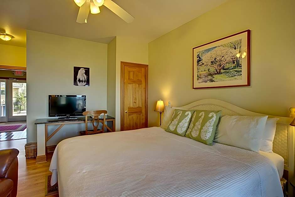 Located above Cafe Pamlico's bar on the second level of the east building, this guestroom offers garden views and partial views of the sound. Also known as Honeysuckle, this room features a private bathroom with Italian ceramic tile and an oversize spa bath. A 32-inch flat-screen TV is provided.