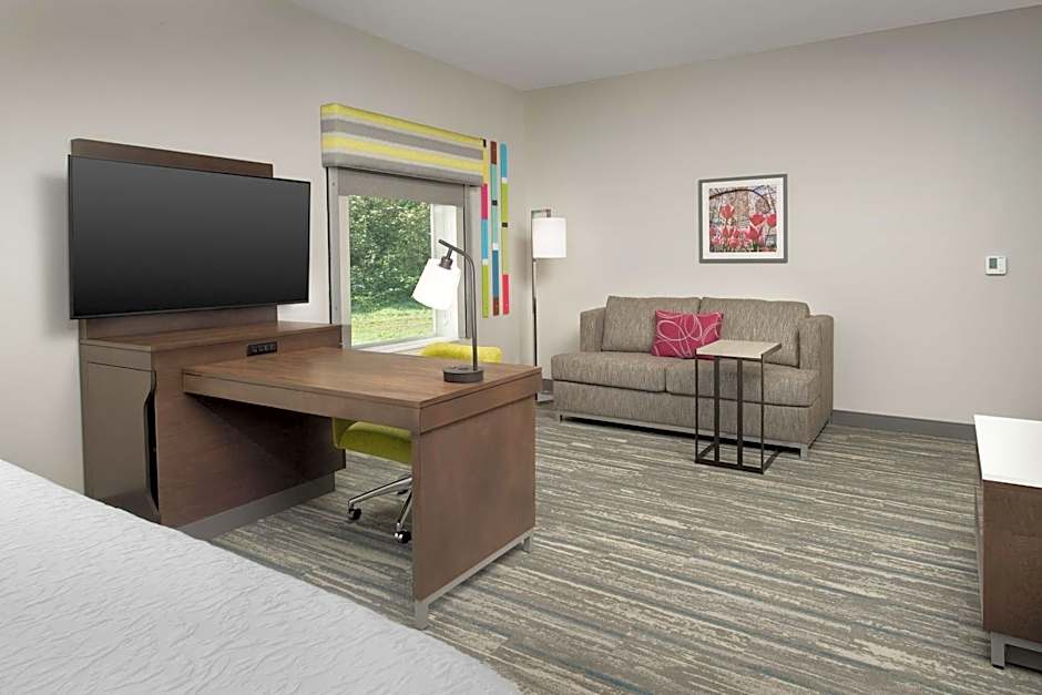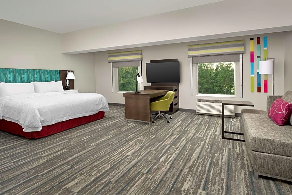 The Hampton Inn & Suites Charlotte Airport Lake Pointe offers a variety of room options. They have King Studio Suites and King Rooms with Sofa Beds, both of which accommodate up to 4 adults and 3 children. These rooms have a King size bed and a sofa bed. They also have Queen Rooms with Two Queen Beds, which accommodate the same number of guests and have 2 Queen size beds. All rooms are non-smoking and have a size of 301 sqft.