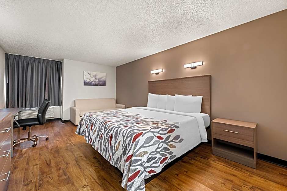 The Red Roof Inn Charlotte-University offers rooms with various features. The Superior King Room Non-Smoking has a king-size bed, a room size of 420 sqft, and can accommodate 2 adults and 1 child. The Deluxe Double Room with Two Double Beds Non-Smoking has two double beds, a room size of 452 sqft, and can accommodate 4 adults and 3 children. The Superior King Room with Disability Access Non-Smoking has a king-size bed, a room size of 420 sqft, and can accommodate 2 adults and 1 child.