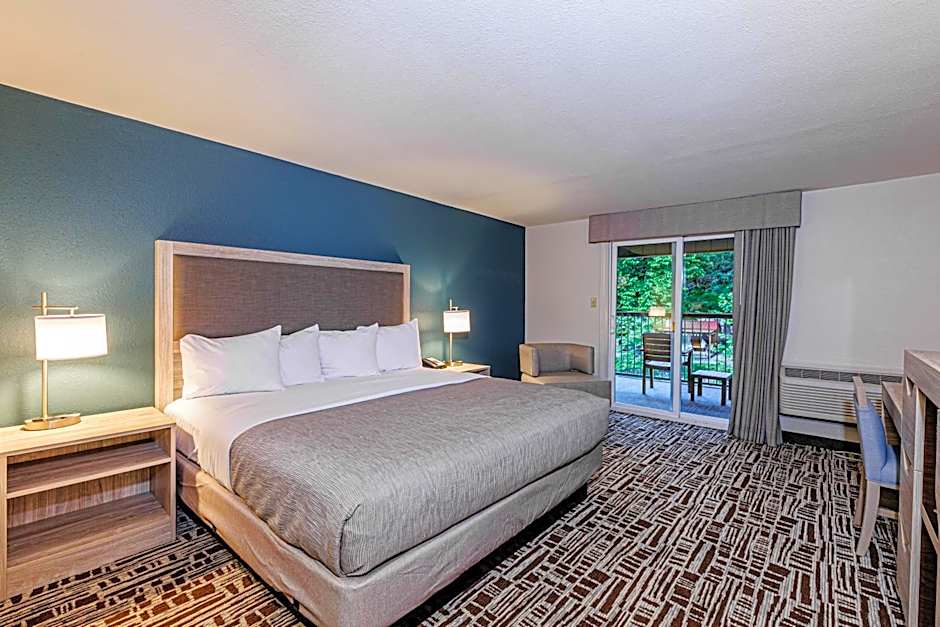 places travelers right by the water, with river views flowing from the balcony or the garden. A welcoming patio and greenspace set the scene for a relaxed evening after days spent exploring Cherokee, and extra-long beds—over 6.5 feet—offer a comfy finish to busy days.
