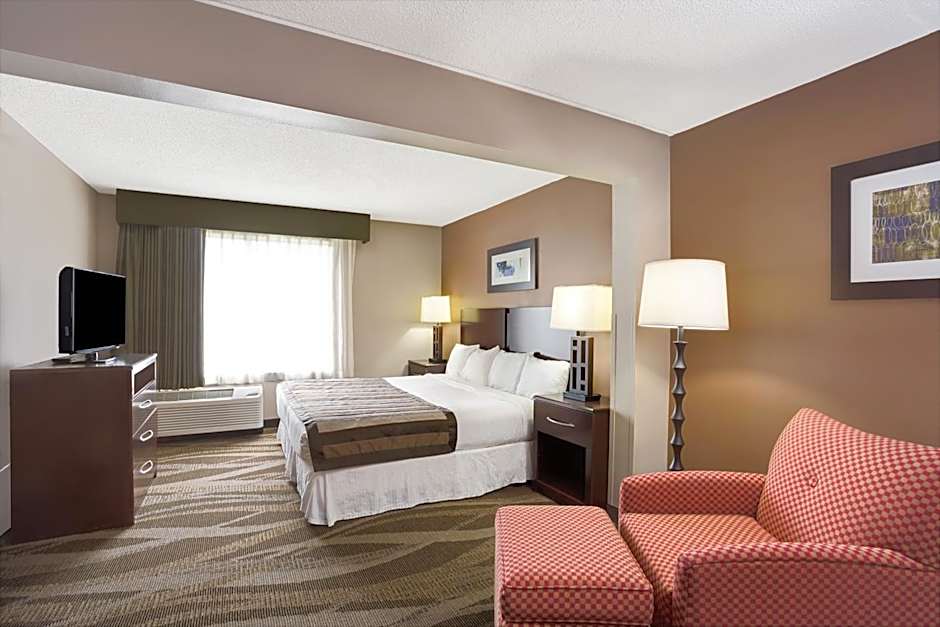 The Wingate by Wyndham Raleigh Durham / Airport hotel offers several room options. The King Suite and King Room are both non-smoking rooms that can accommodate 3 adults and 2 children. They have 1 King size bed. There is also a Queen Room with Two Queen Beds, which can accommodate 4 adults and 3 children. All rooms have a room size of 334 sqft and smoking is not allowed.