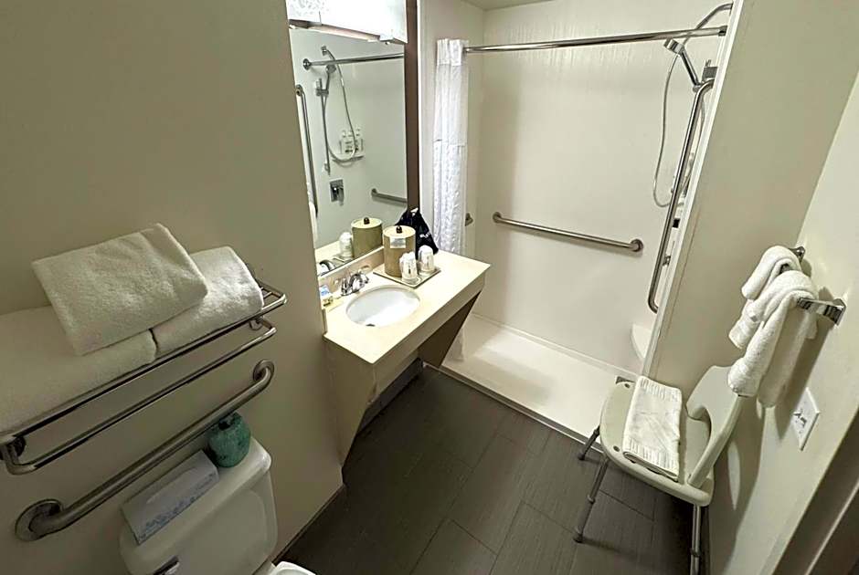 This accessible, air-conditioned room features a cable TV and seating area.