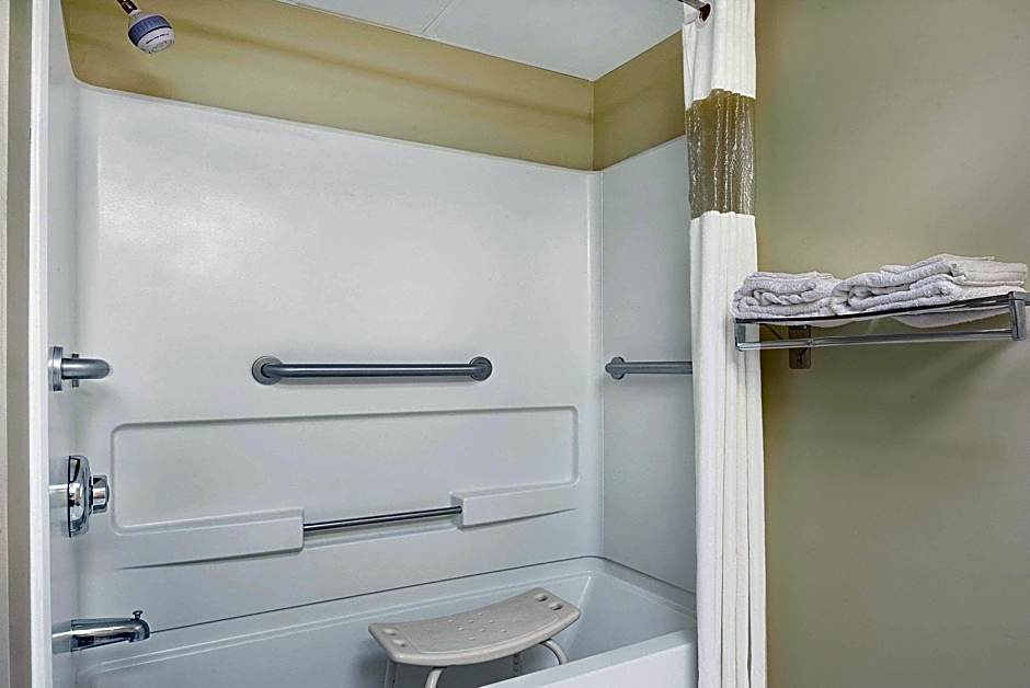 This accessible room features a flat-screen TV with cable channels. A refrigerator, coffee maker, and microwave are provided as well.