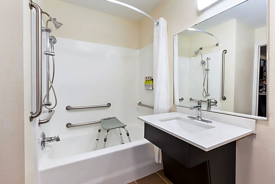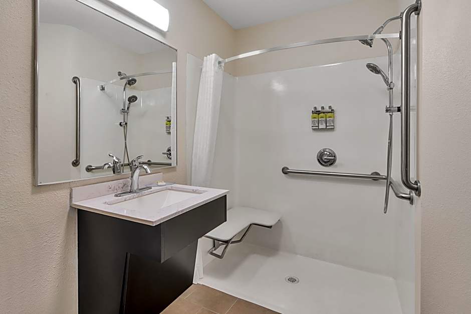 This nonsmoking, accessible suite has a cable TV with a DVD player, a microwave, and a refrigerator.