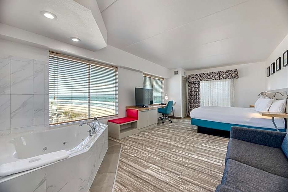 Views, private balcony, complimentary WiFi, HDTV, mini-refrigerator, microwave Admire side Atlantic Ocean views from the balcony of this bright guest room which features one comfortable king-sized bed. The in-room Hospitality Center provides a mini-refrigerator, microwave and a coffeemaker to make you feel at home. Relax and watch an on-demand movie on the HDTV with premium cable channels. Catch up on work at the large desk with ergonomic chair, complimentary WiFi access and secure remote printing to the 24-hour Business Center.