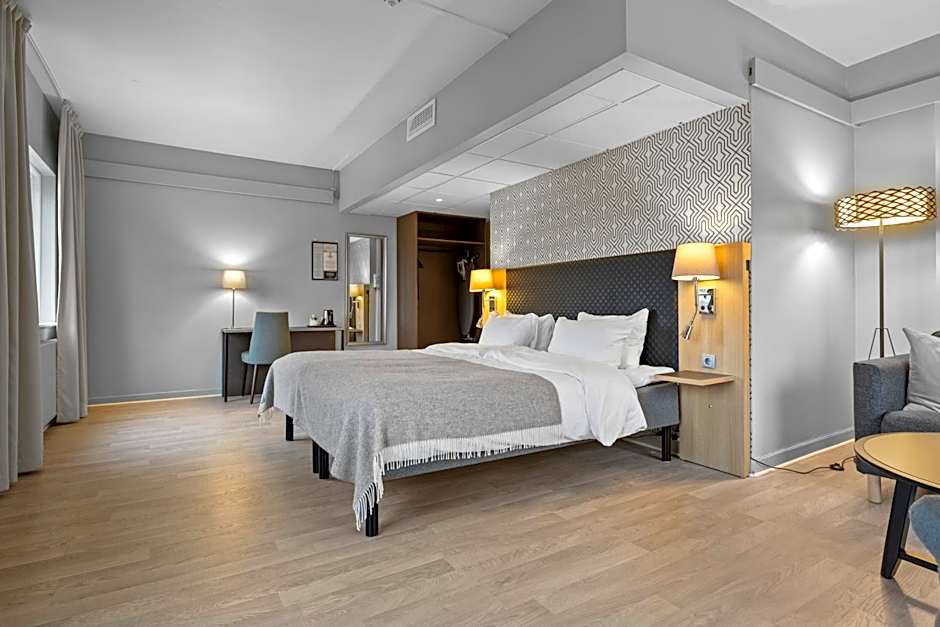 Room options span standard layouts and a variety of suites, with configurations that include king beds and sofa beds. Some suites offer extra touches such as a fireplace, a Jacuzzi, or a bathtub, and non-smoking rooms are available to suit different preferences.
