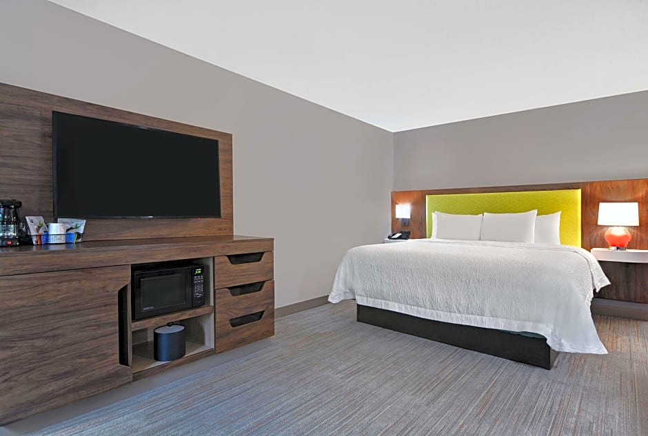 The Hampton Inn Charlotte Monroe offers a variety of rooms including King Studios, King Rooms with Sofa Bed, King Rooms with Bath Tub, King Rooms with Bath Tub - Mobility/Hearing Accessible, and Queen Rooms. Smoking is not allowed in any of the rooms. Accommodations range from double occupancy to quadruple occupancy. Bed sizes include King and Queen, with some rooms also offering a sofa bed.