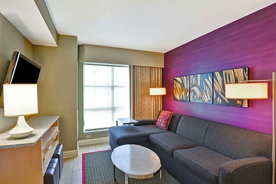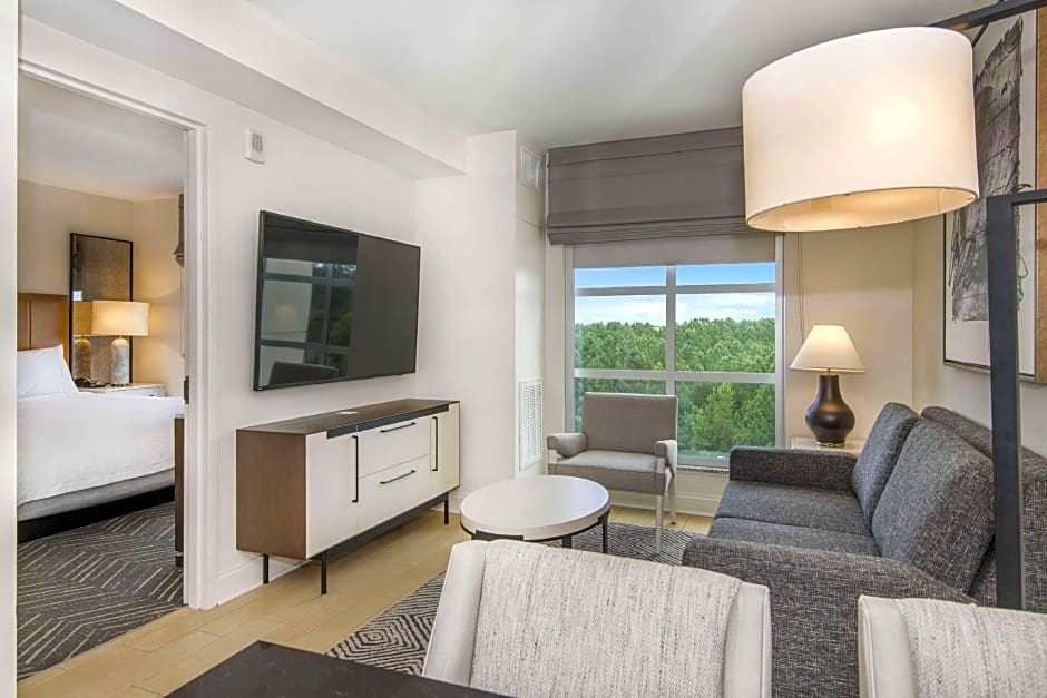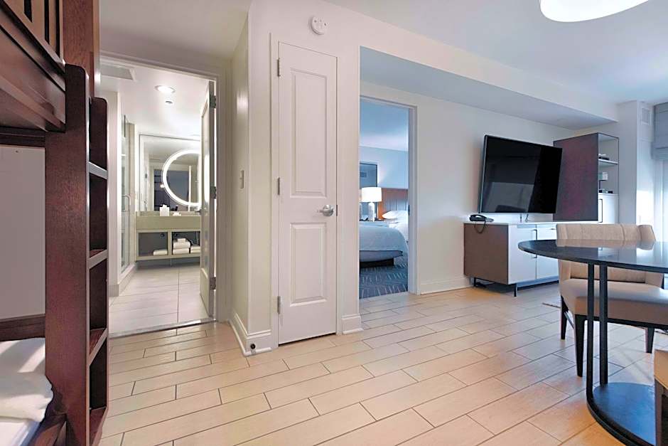 This suite includes a 42-inch flat-screen TV in the separate seating area. A microwave and small refrigerator are also included.