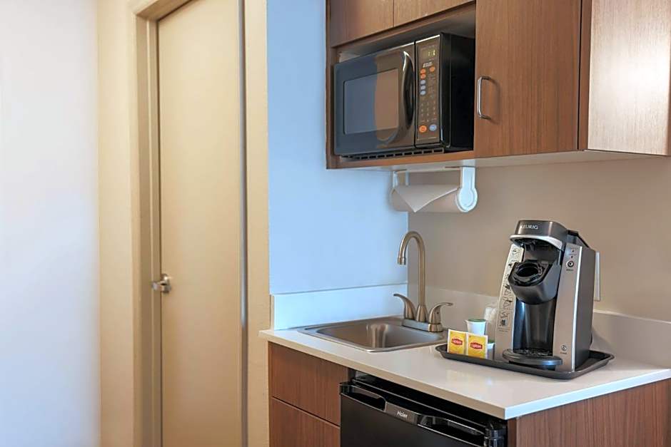 This spacious suite features a spa bath, desk, and small refrigerator. A microwave is also included.