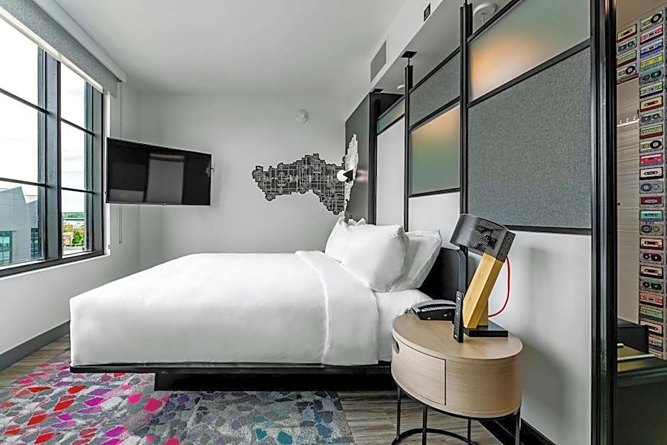 The hotel offers Urban Guest rooms with 1 King bed and city views, Aloft Queen rooms with 1 Queen bed, and Aloft King rooms with 1 King bed. All rooms have a size of 301 sqft and do not allow smoking. They can accommodate 2 adults and no children.