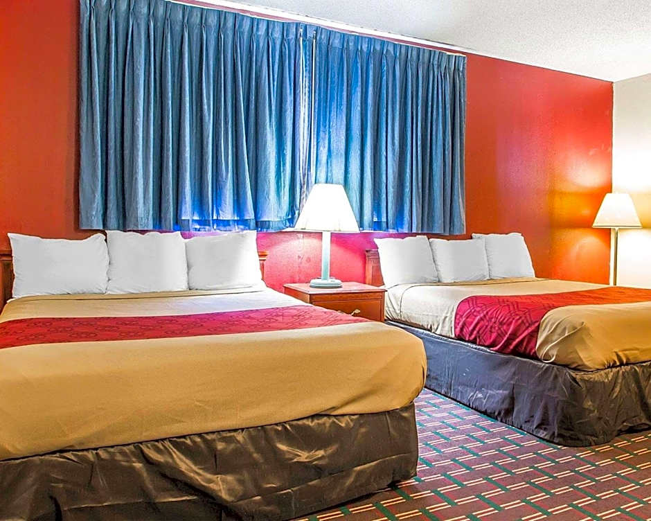 The Rodeway Inn offers a variety of room types including rooms with 2 Queen beds, a King bed, or a Queen bed. Occupancy ranges from 2 adults and 1 child to 4 adults and 3 children. Smoking is not allowed in all rooms, and bed sizes vary from Queen to King.