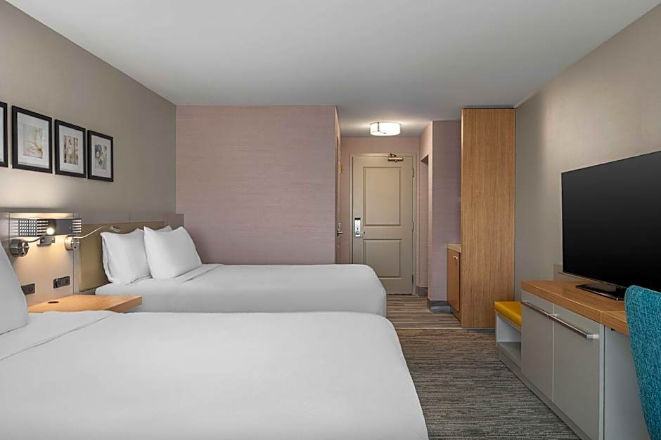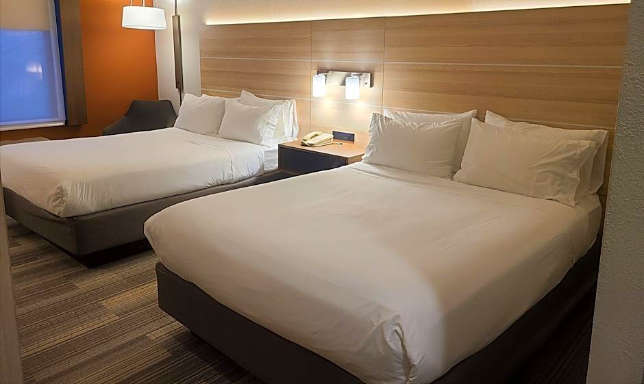 The Holiday Inn Express Lordstown-Newton Falls/Warren offers a variety of room types including Queen Rooms with, Two Queen Beds, and King Rooms. Other options include Studio Suites with Two Queen Beds and King Suites. All rooms are non-smoking and accommodate both adults and children, with the maximum occupancy ranging from 2 to 4 adults and up to 3 children. The room sizes vary between 323 sqft to 377 sqft.